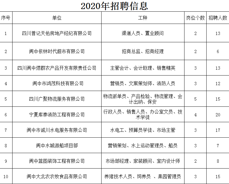 阆中市就业服务管理局——阆中本地最新用工信息!